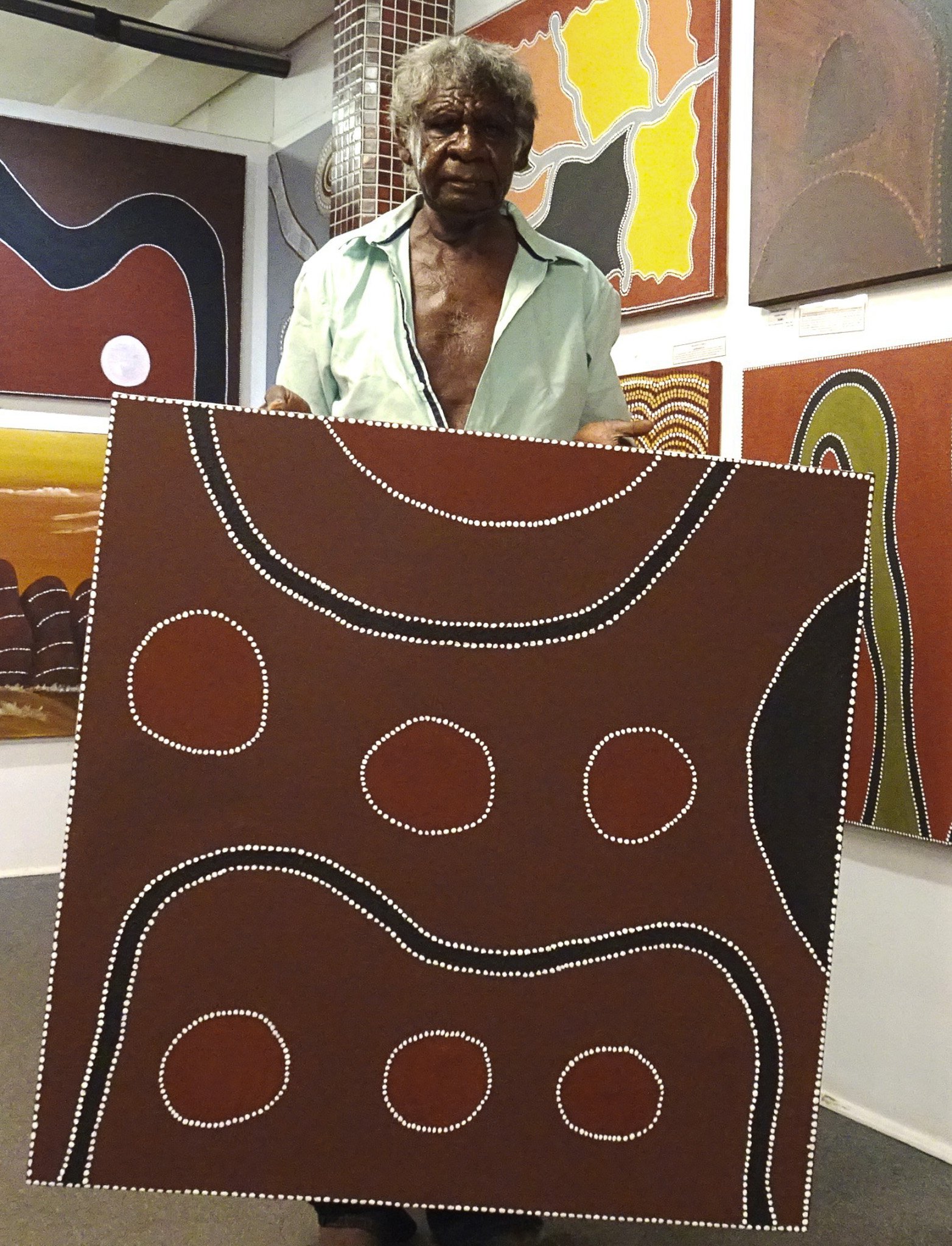 He has participated in Solo and Group Exhibitions throughout Australia – his paintings have been acquired by important collectors, the National Gallery of Australia and the Parliament House Collection. Tommy’s works are popular world-wide, as many collectors from America, Germany and Holland have discovered and collected and continue to commission works by this now well established artist.